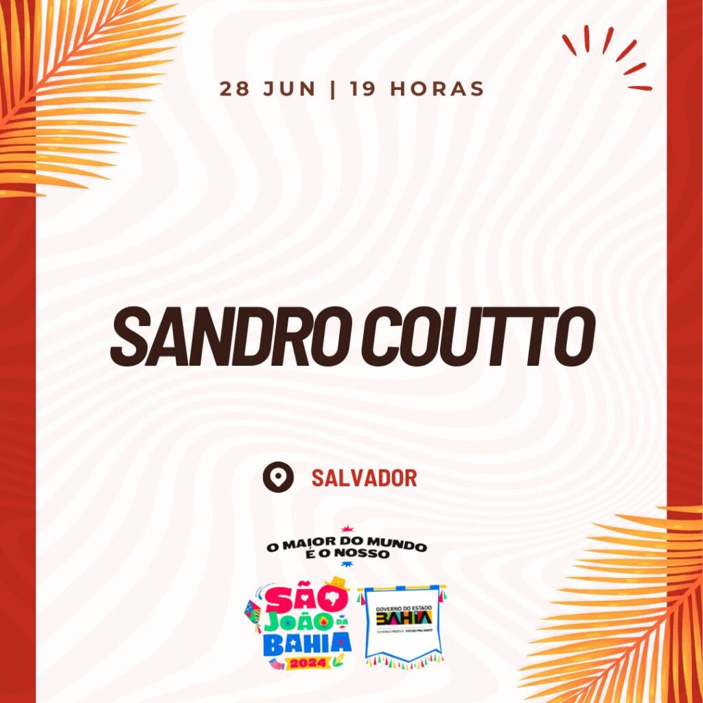 No dia 28/06/2024, Salvador será palco de um grande espetáculo com Sandro Coutto, trazendo toda a riqueza da cultura nordestina! 🌵🎶🔥